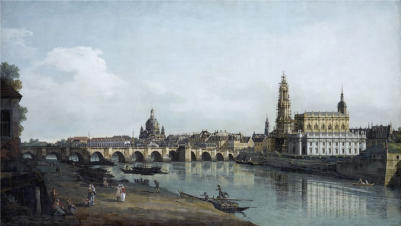 Бернардо Беллотто. Вид Дрездена с правого берега Эльбы ниже от моста Аугустусбрюке.